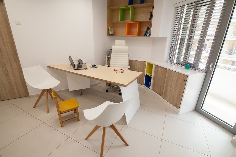Παιδιατρικό Ιατρείο στο κέντρο του Ηρακλείου. Η Μαυρής Wood Experts ανέλαβε τις κατασκευές επίπλων με ιδιαίτερα χρώματα και σχέδια, γραφεία ιατρών και τους χώρους υποδοχής.